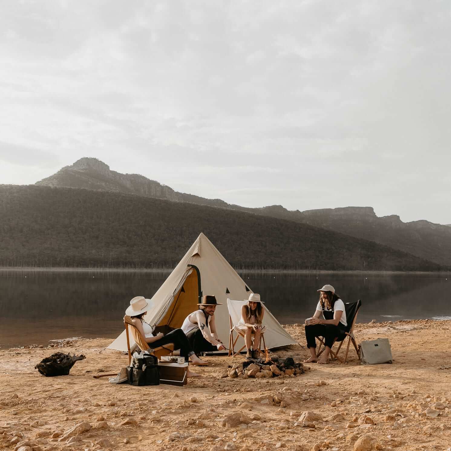 A true 3-4 person tent our Tipi/Laavu style canvas tent is perfect for a couple with plenty of room left for gear and a wood fire stove or for up to 4 people on single mattresses.